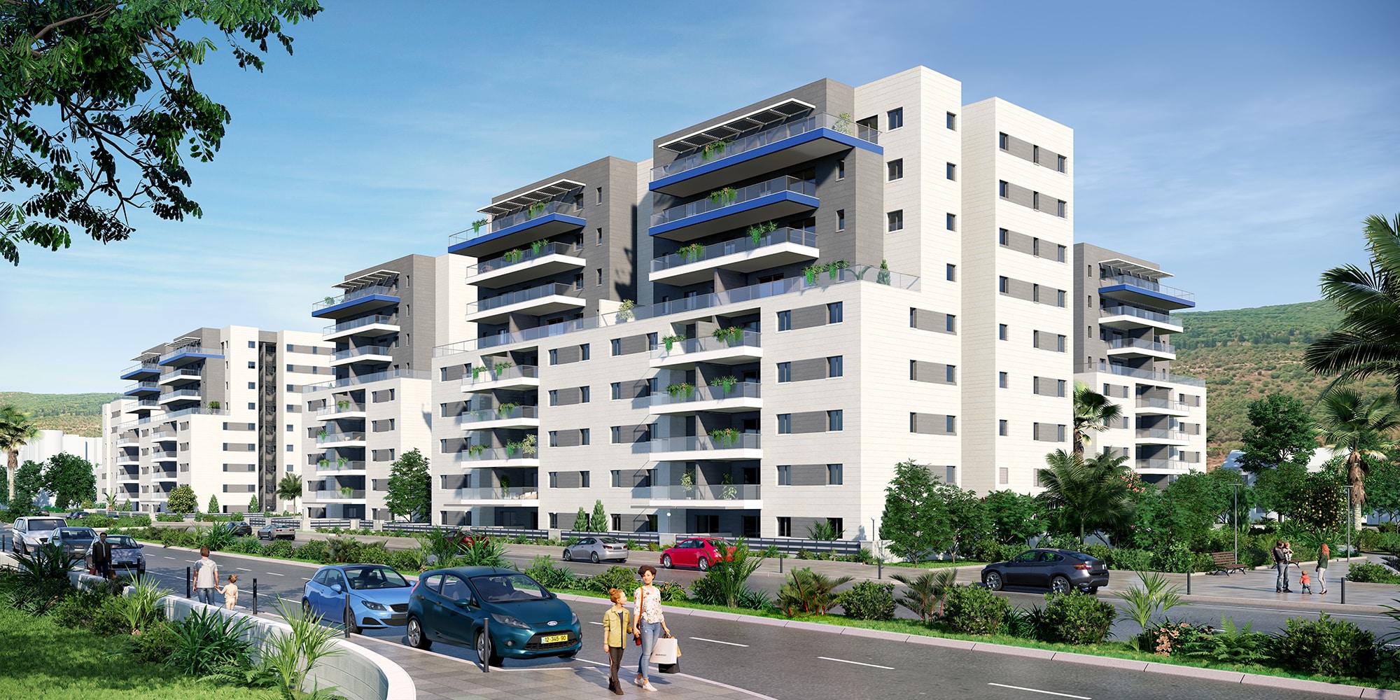ו– 6 בניינים בני 8 קומות (קרקע + 8 קומות), עם מגוון רחב של דירות בנות 3 חדרים, פנטהאוזים ודירות גן מרווחות ומפנקות.