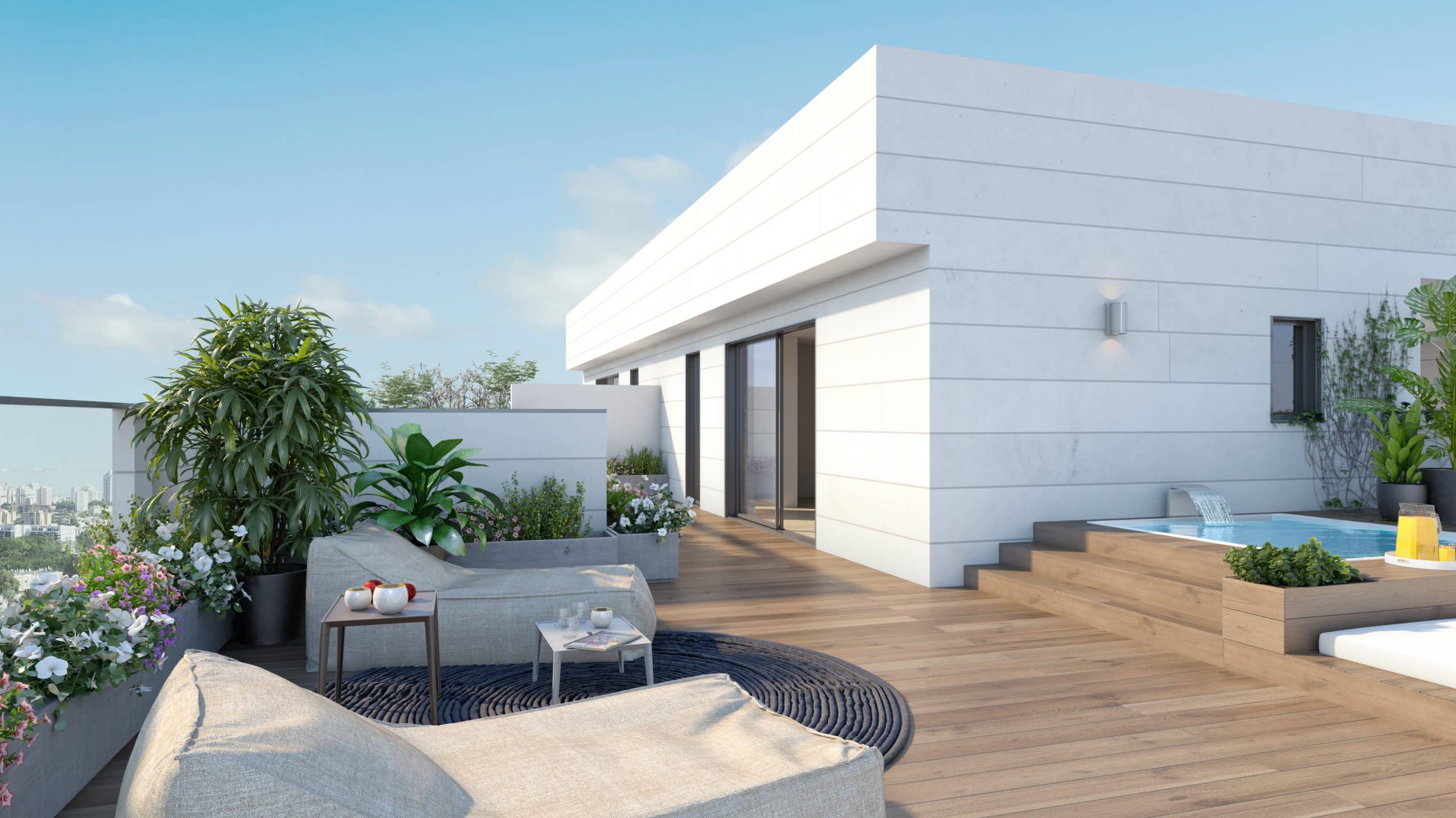 בנייני הבוטיק מכילים תמהיל מגוון של דירות מיוחדות – פנטהאוזים, דירות גן ודירות 5 חדרים.