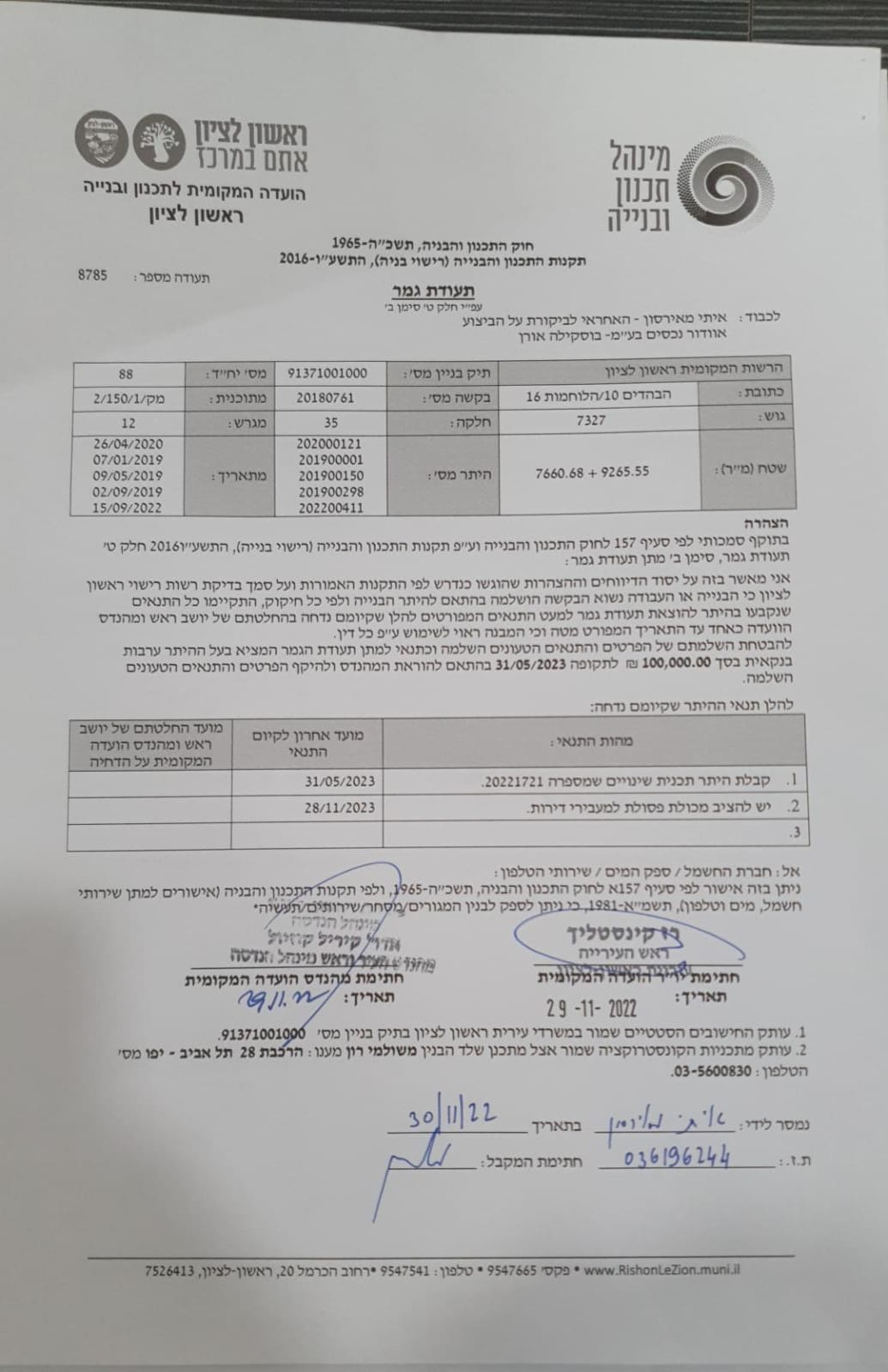 מסמכים לעיון משתכן נרקיסים ראשל"צ