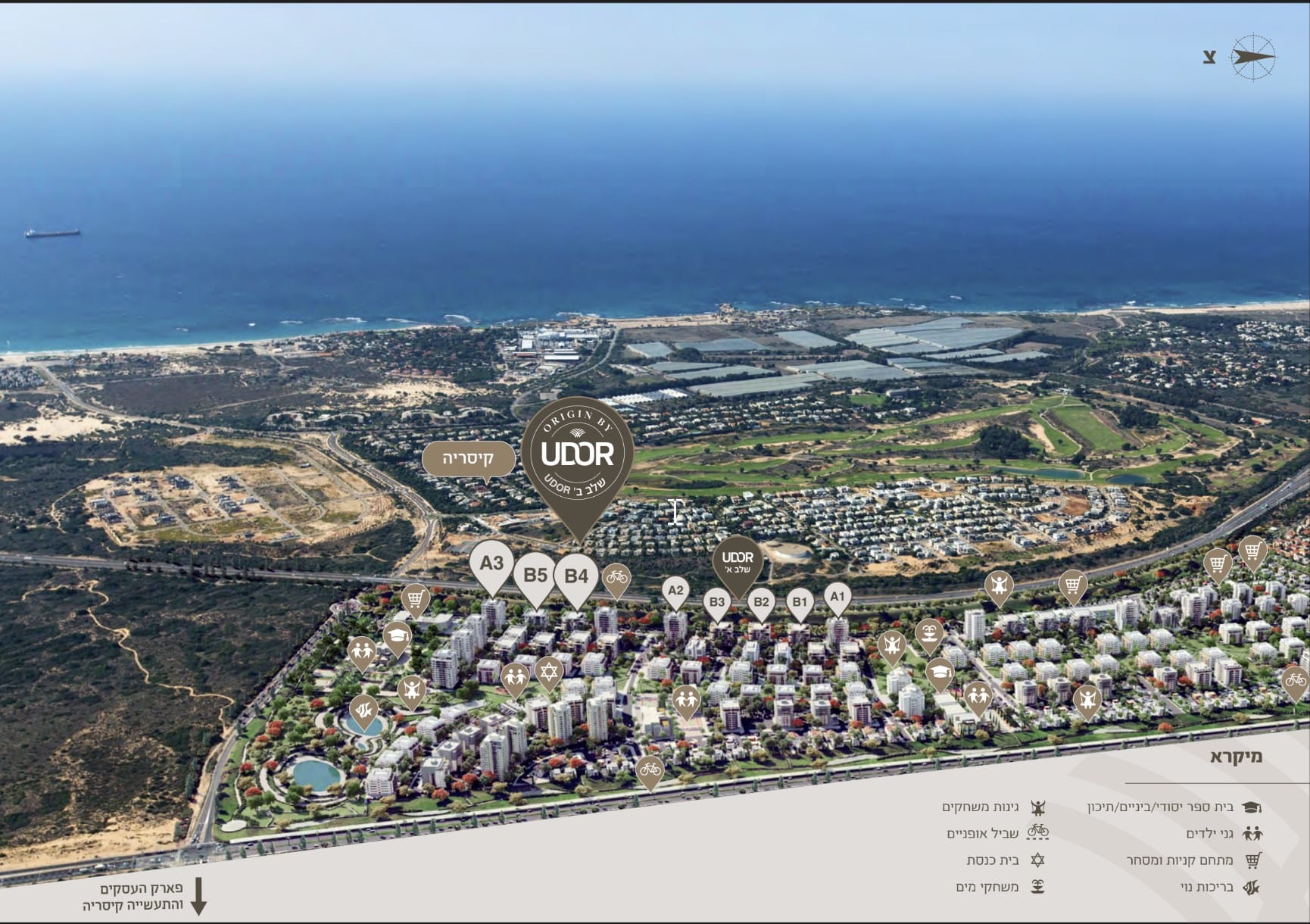 הפרויקט שוכן בקו מערבי ראשון ומכיל 3 בניינים, בניין בן 14 קומות ו2 בניינים בני 10 קומות הממוקמים סמוך למרכז המסחרי בכניסה לשכונה השייך לקרן לפיתוח קיסריה. הפרויקט מונה 133 דירות של 3,4,5 חד', דירות גן, מיני פנטהאוזים ופנטהאוזים.