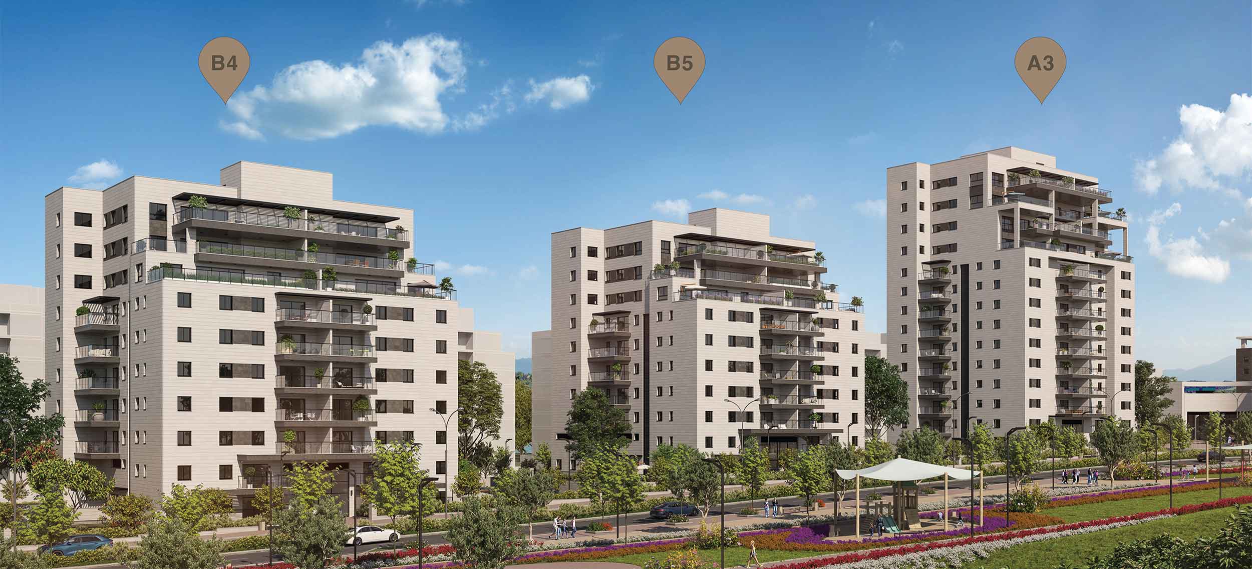 הפרויקט שוכן בקו מערבי ראשון ומכיל 3 בניינים, בניין בין 14 קומות (קרקע + 13) ו- 2 בניינים בני 10 קומות (קרקע + 9) הממוקמים סמוך למרכז המסחרי בכניסה. הפרויקט מונה 133 דירות של 3,4,5 חד', דירות גן, מיני פנטהאוזים ופנטהאוזים.